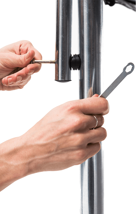 W utrzymaniu stabilnej i bezpiecznej konstrukcji trampoliny, istotne są połączenia stelażu. Muszą być pewne i mocne oraz odpowiednio wyprofilowane. Najbardziej sprawdzają się specjalne ściski, ponieważ nie rdzewieją, tak jak spawy.