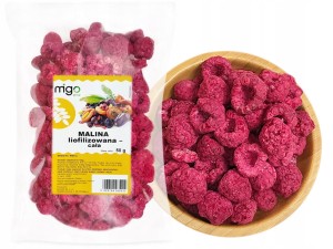 Malina liofilizowana ze względu na specyfikę procesu produkcji nie tracą właściwości świeżego produktu. Wspaniały smak, aromat i przy tym chrupka, zaskakująca struktura - świetny dodatek do wielu dań, jak i przekąska w ciągu dnia.