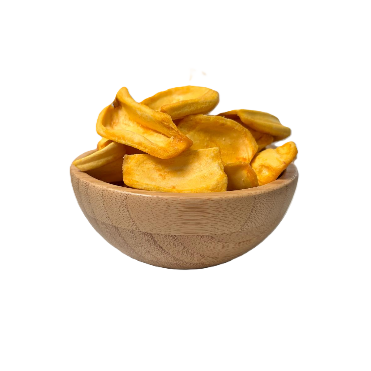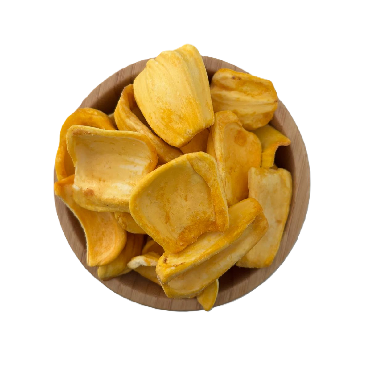 Suszone owoce chlebowca (jackfruit) to egzotyczna przekąska o intensywnie słodkim smaku i aromacie, przypominającym mieszankę banana, mango i ananasa. Świetnie sprawdzają się jako zdrowa alternatywa dla słodyczy lub dodatek do musli i deserów.
