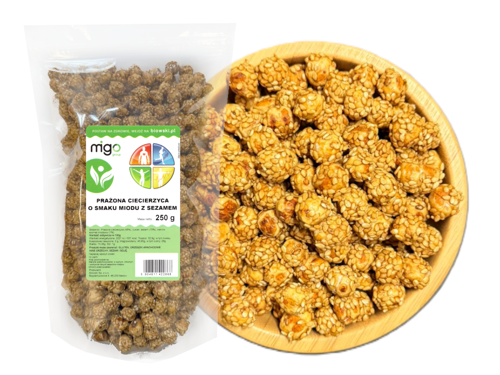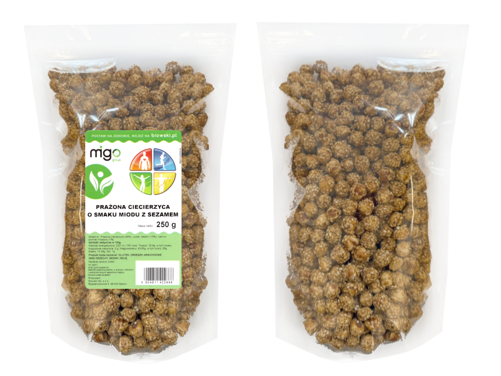 Prażona ciecierzyca o smaku miodu z sezamem 250g - MIGOgroup