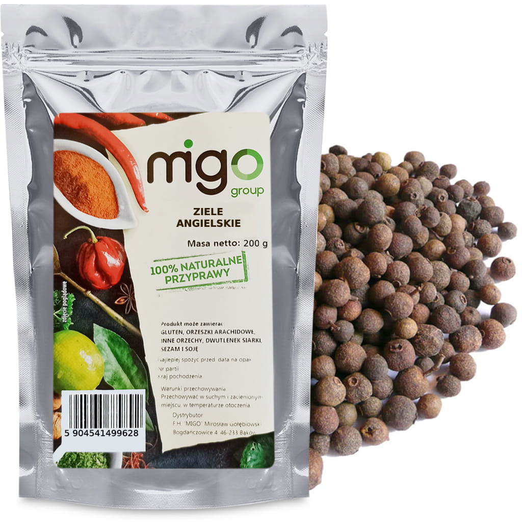 Całych ziaren używa się do przyprawiania różnych gatunków mięs, drobiu, wędlin, mięs, dziczyzny, ryb, zup, marynat, kiszonek i innych przetworów warzywnych, duszonych warzyw, a nawet ciast. Dodaje się je też do sosów i tłustych potraw, które uzyskują dzięki niemu przyjemny aromat. Ponadto można ziele angielskie zetrzeć, co podkreśli smak i zapach potraw.